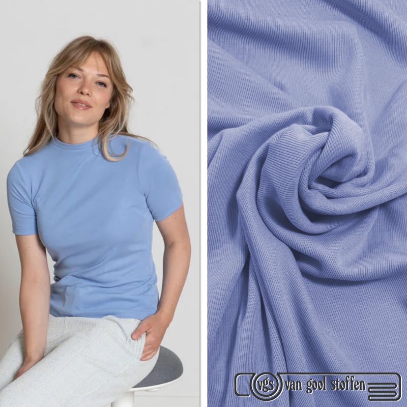 Tricot viscose Lavé met Fijne Rib – A La Ville / knipmode lavendel blauw