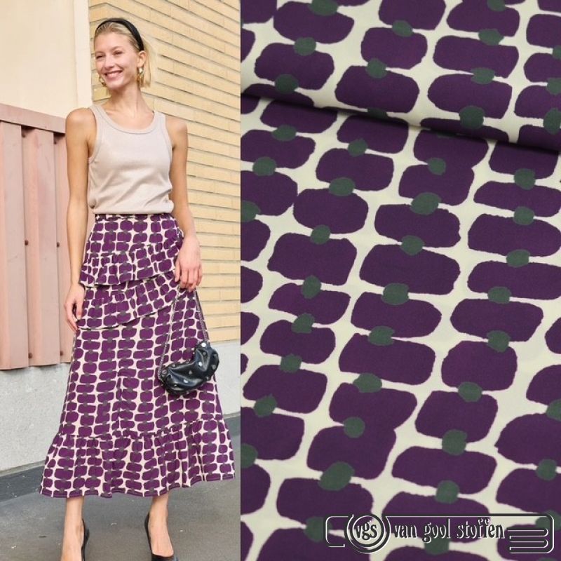 Viscose abstract print aubergine paars A La Ville / knipmode