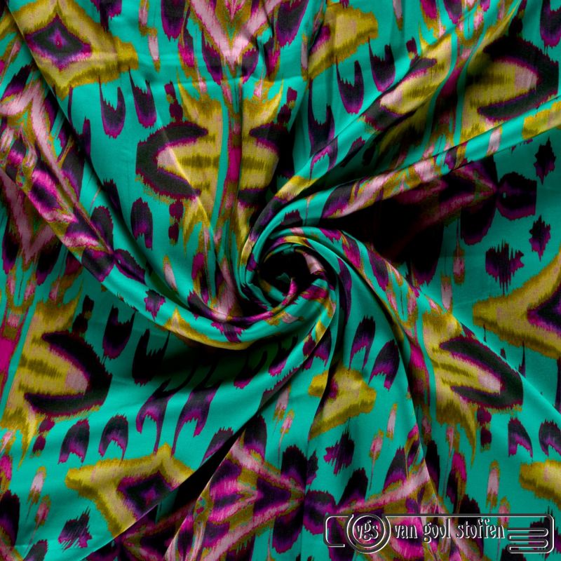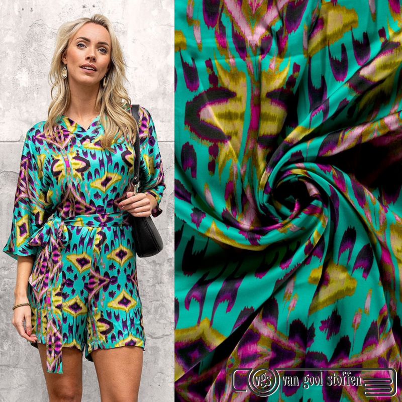Stretch viscose ecovero lenzing abstract paars brique blauw #A la ville