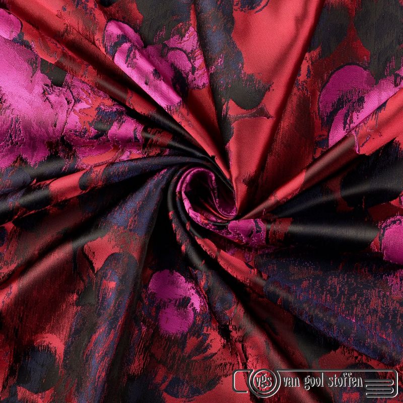 Exclusieve zijde stretch italiaanse designerstof klap rozen rood zwart