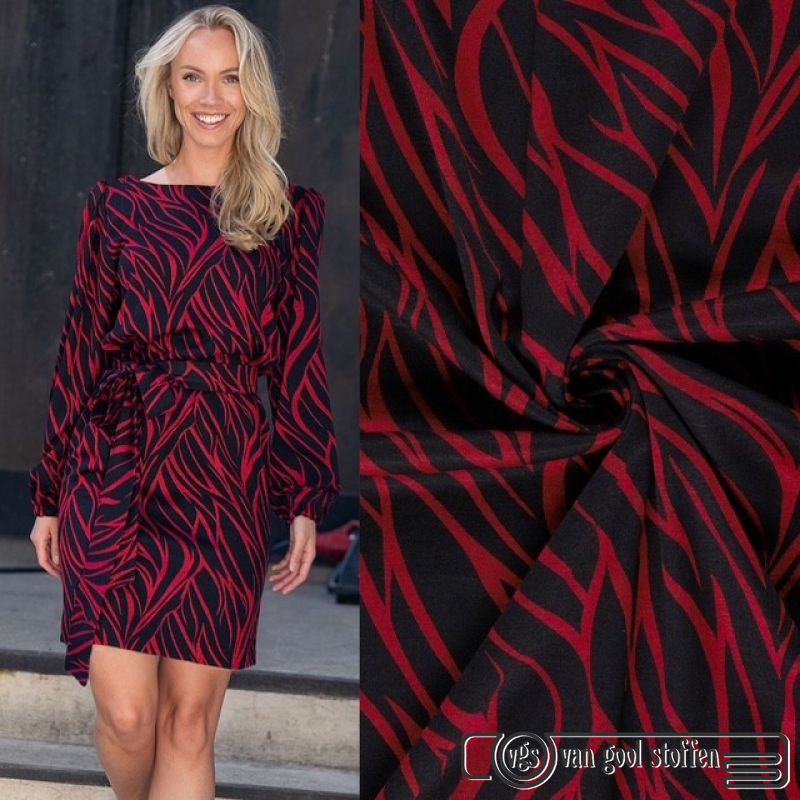 Exclusieve stretch zijde Italiaans design color waving bruin bordeaux rood cerise