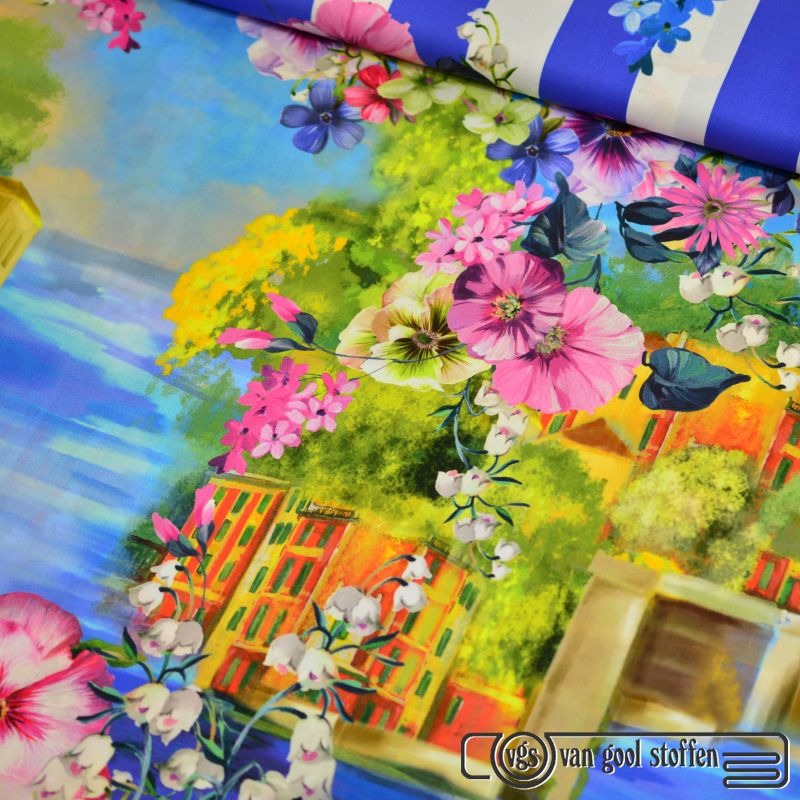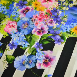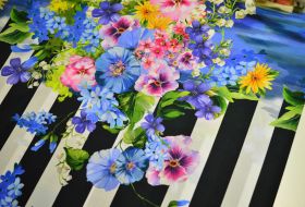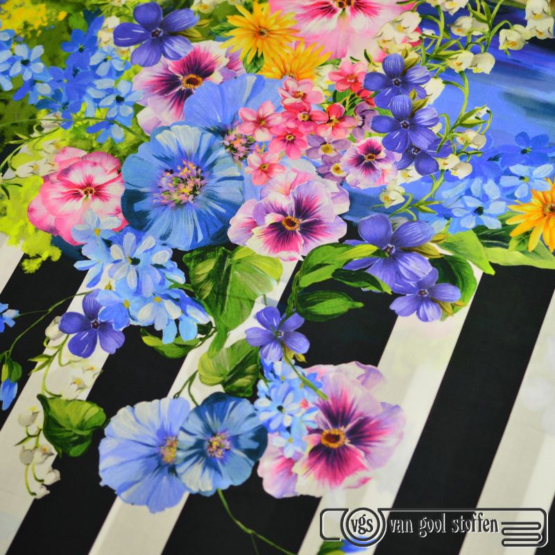 Panel haute couture italiaanse designer panel streep met bloemen katoen stretch1.30mtr x