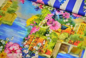 Panel haute couture italiaanse designer panel streep blauw met bloemen katoen