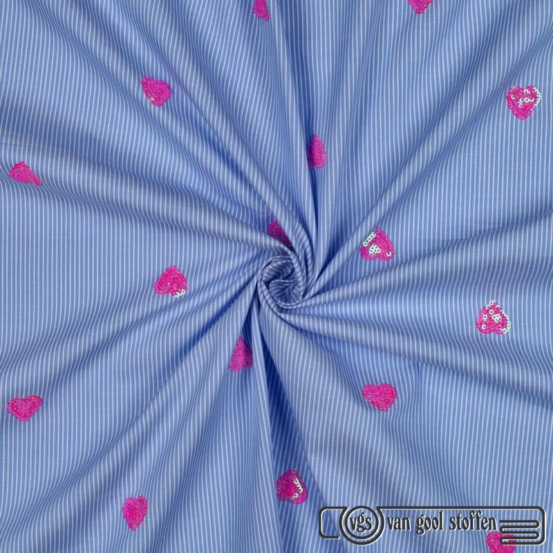 Katoen streep hartjes pailletten