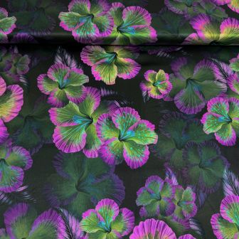 Exclusieve stretch zijde italiaans design bloemen print groen cerise