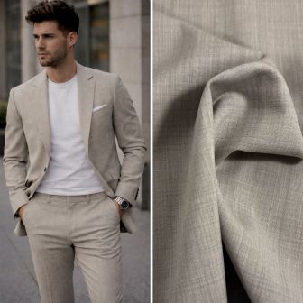Bistretch de lana italiana exclusiva. Esta hermosa y flexible lana peinada es de alta calidad procedente de Italia, muy adecuada, entre otras cosas, para trajes a medida, trajes, pero también vestidos, pantalones, chaquetas y faldas. Este tejido tiene 270 gramos m2.