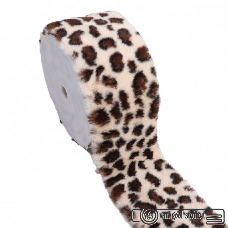 Bont / borg rand 10cm Animal print / panter ivory bruin bambi