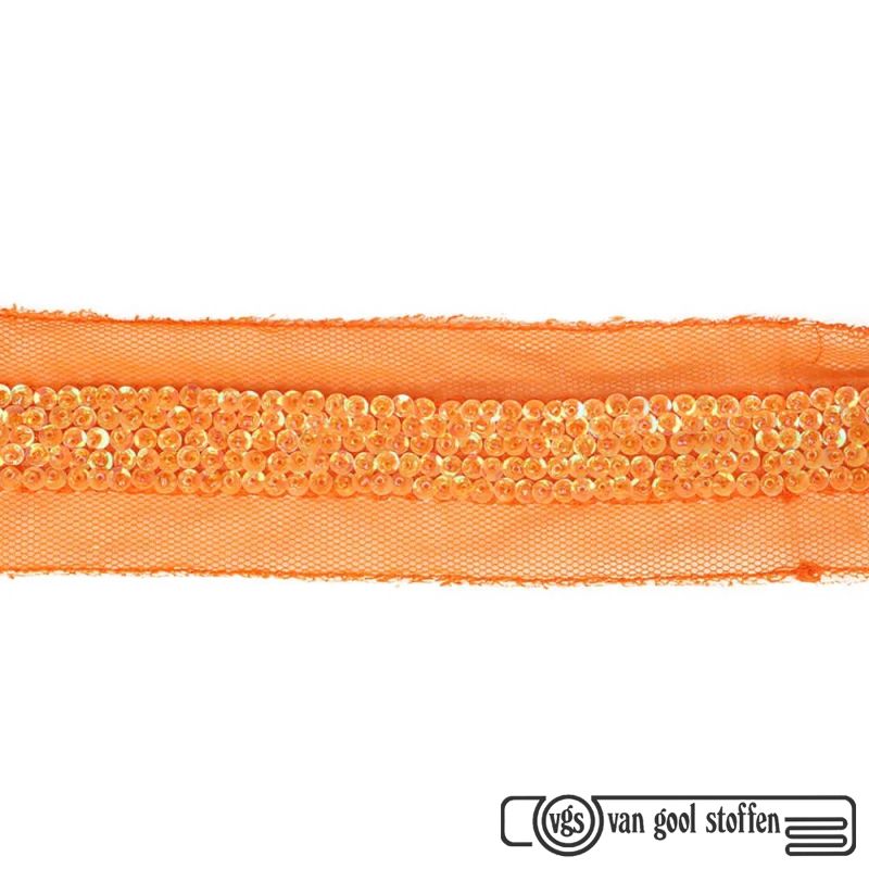 Tule kant pailletten handgemaakt 45mm oranje artikel 2355-5-693