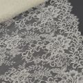 Dentelle française avec bord cils et bord miroir, de sorte que la dentelle est finie de la même manière des deux côtés. La dentelle française est réalisée en pièces de 3 mètres. Si vous voulez plus de 3 mètres, vous le recevrez toujours en deux morceaux.