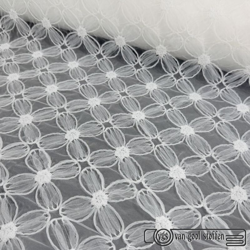 Fantasie tule brode met bloementjes artikel 3585-110 ivory uitlopend