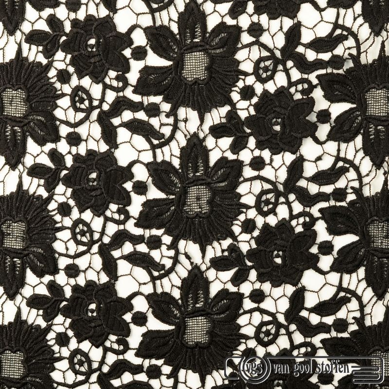 Guipure kant grof met bloemen motief zwart