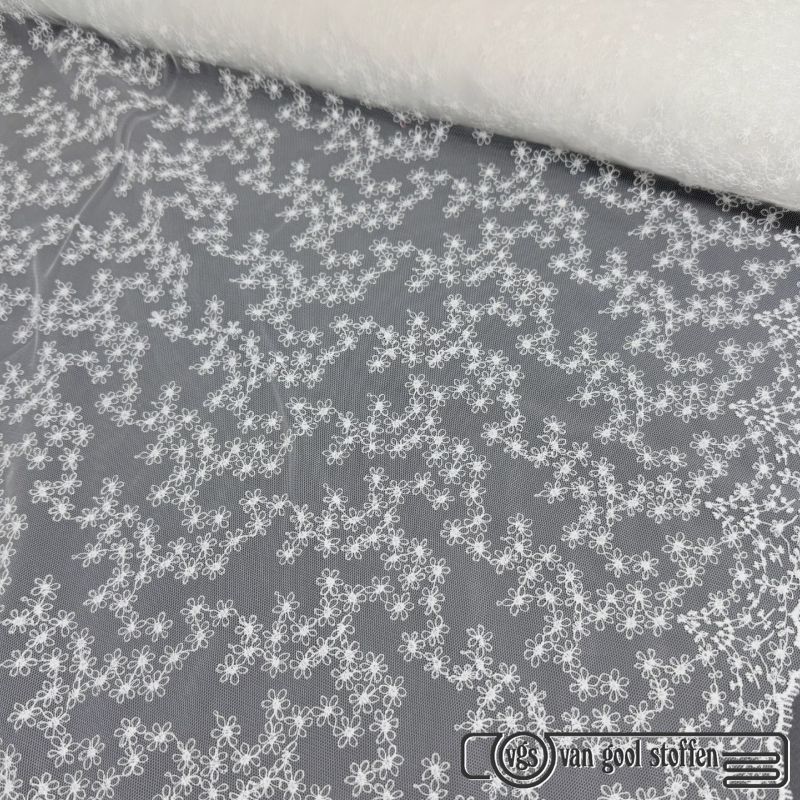 Fantasie tule brode met bloementjes artikel 3585-110 ivory uitlopend