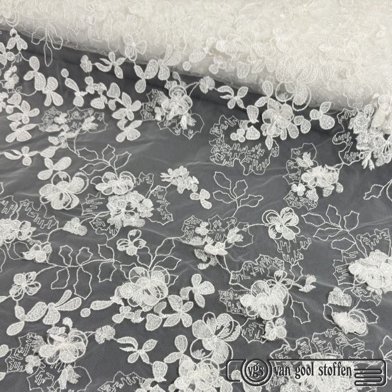 Bruidskant wit bloementjes met schulprand 4422-000 wit