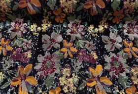 Exclusieve 3D kant met bloemen en pailletten geel paars rood