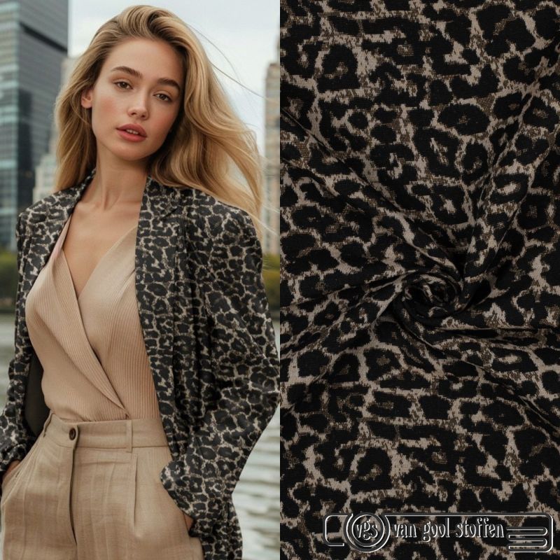 Jacquard animal skin leopard beige bruin