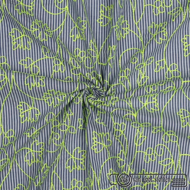 Katoen Streep Blauw-Wit met Neon Borduring