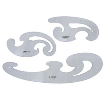 Bohin uit Frankrijk bestaat al sinds 1833. In de werkplaatsen in Normandië produceert Bohin op traditionele wijze de mooiste naalden en spelden van hoge kwaliteit. In de collectie vindt u daarnaast scharen, vingerhoedjes, knopen, speldenkussens, tornmesjes en nog veel meer. Deze kleermakerssjablonen gebruikt u voor het tekenen van gebogen lijnen en onregelmatige vormen. Ze komen zeer goed van pas bij patroontekenen van mode-/maatkleding en voor het tekenen of aanpassen van bijvoorbeeld halslijnen, zijnaden, suçons, coupenaden, kragen, armsgaten of mouwen in blouses, overhemden, colberts, broeken, jurken en rokken. De sjablonen zijn gemaakt van duurzaam en slijtvast kunststof. Elke verpakking bevat 3 verschillende maten: klein (14cm lang), middel (17cm lang) en groot (32cm lang).