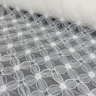 Exclusieve tule met bloemen gemaakt van de tule waardoor een 3D effect 134cm breed . Wilt u de stof goed kunnen beoordelen dan kunt u een monster van 10cm bestellen.