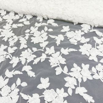 Dit prachtige 3D bruidskant is een exclusieve en verfijnde stof, rijk gedecoreerd met bloemen en bladeren voor een romantische en luxe uitstraling.