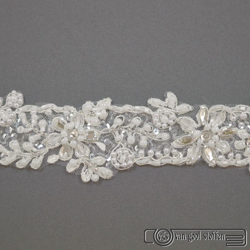 Applicatie met strass crystal steentjes, parels en kraaltjes 33cm per paar