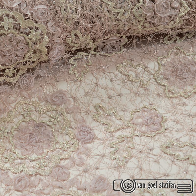 Exclusieve kant met kraaltjes en pailletten kleur 920 poeder rose