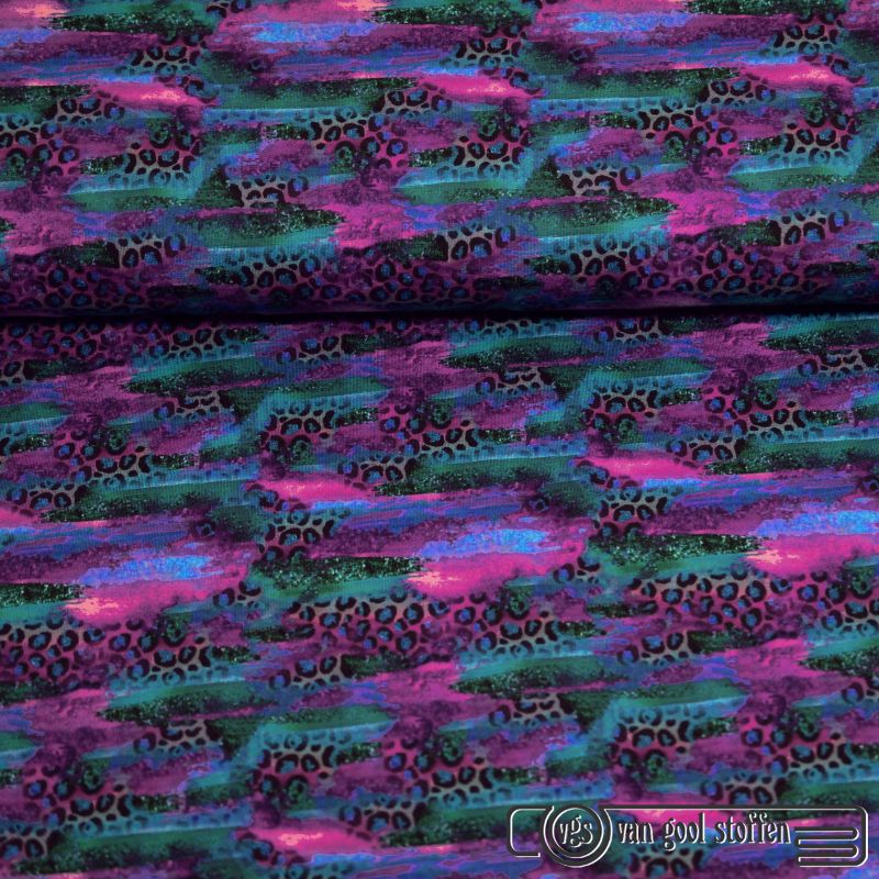 French terry tricot panter paars petrol