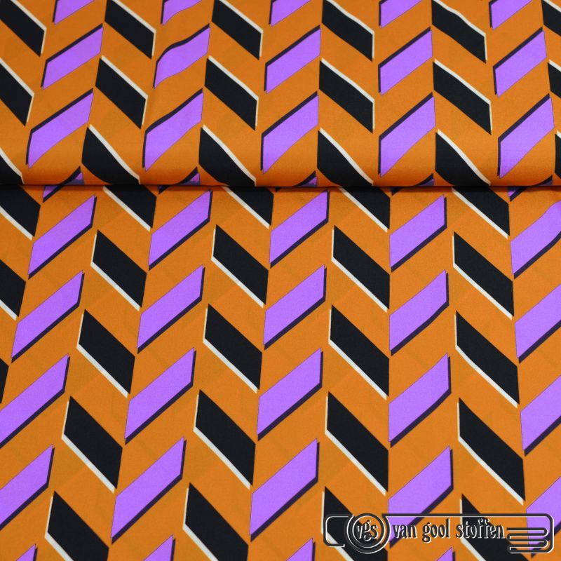 Exclusieve stretch zijde Italiaans design abstract visgraat dark orange purple