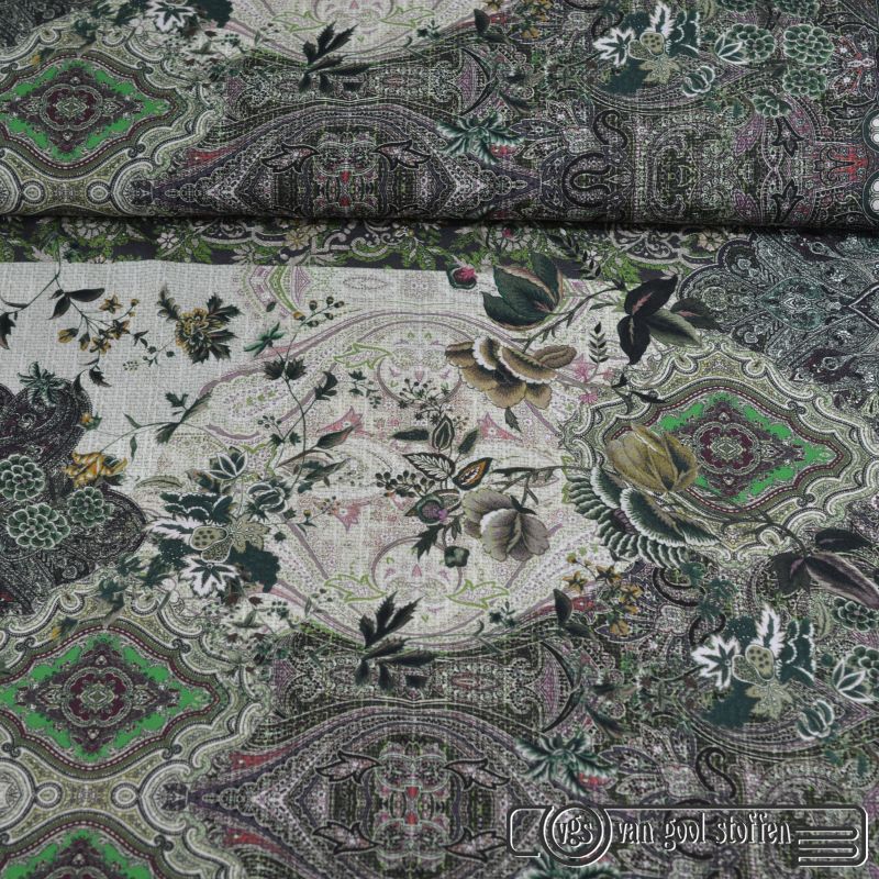 Exclusieve zijde stretch Italiaans design paisley groen patroon 73cm