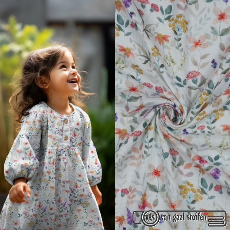 Mouseline /hydrofile katoen stof geborduurd met bloemen wit # my image