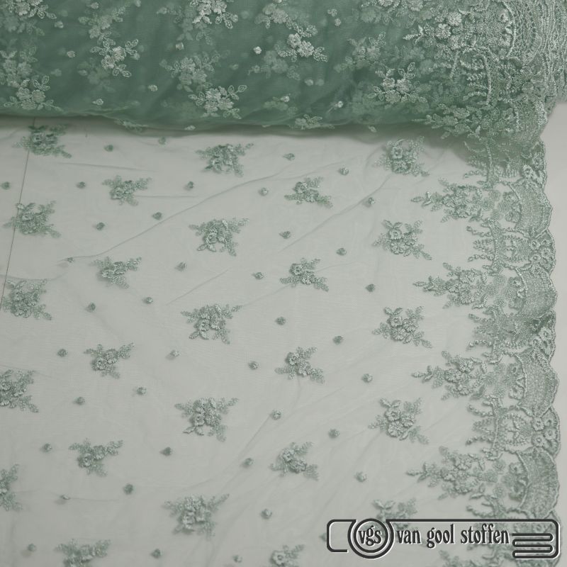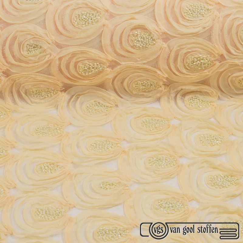 Tule met opgestikte ovaal met glaskraaltjes licht geel