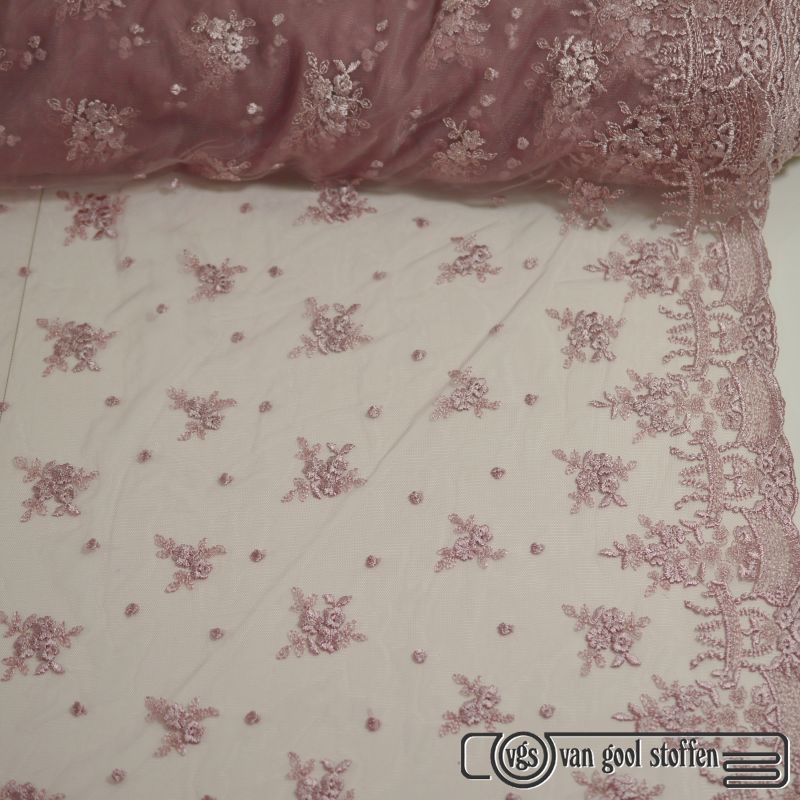 Kant bloementjes met schulprand 4422-038 licht oud rose