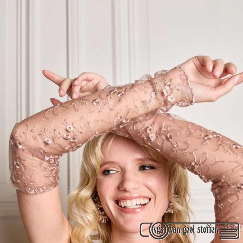 Kant bloementjes met schulprand 4422-007 taupe ( foto knipmode mei)