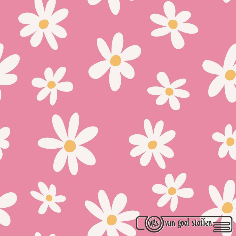 Katoen poplin madeliefjes bloemen roze