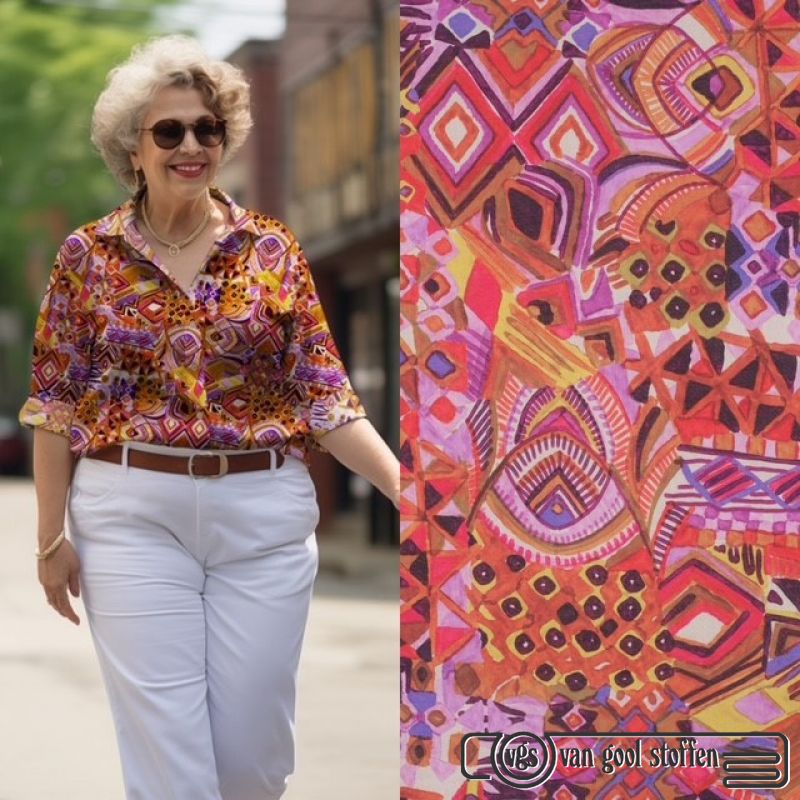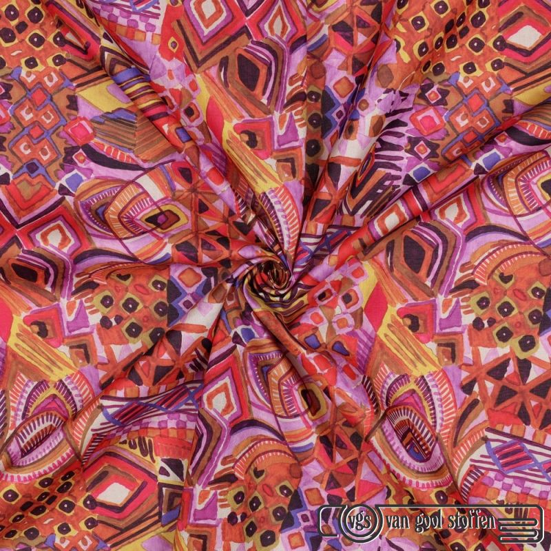 Nerida Hansen katoen voile digital town rose red #Nerida Hansen