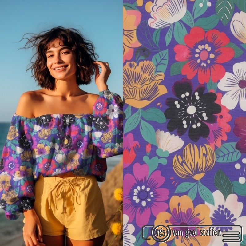 Zwitserse katoen voile bloemenprint geel italiaans design