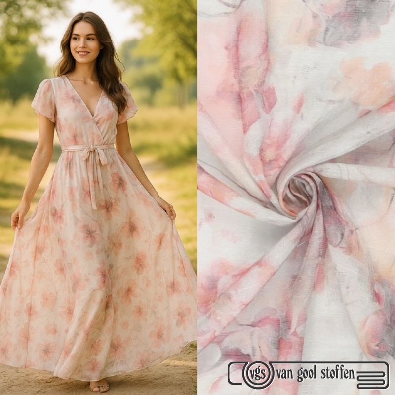 Glanzende viscose water colors perzik / zalm