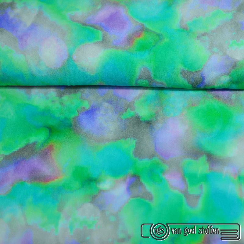 Viscose crepe digitaal print aqua