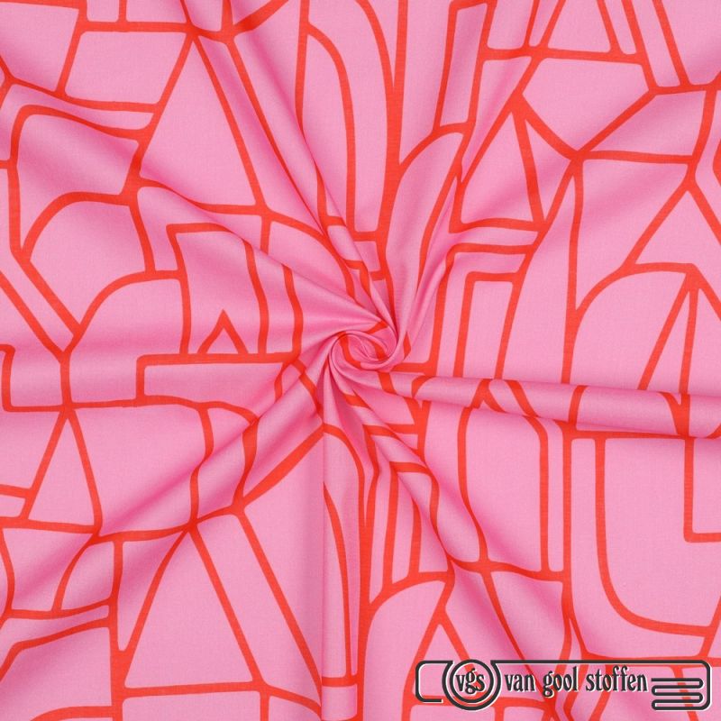 Nerida Hansen katoen voile digital town rose red #Nerida Hansen