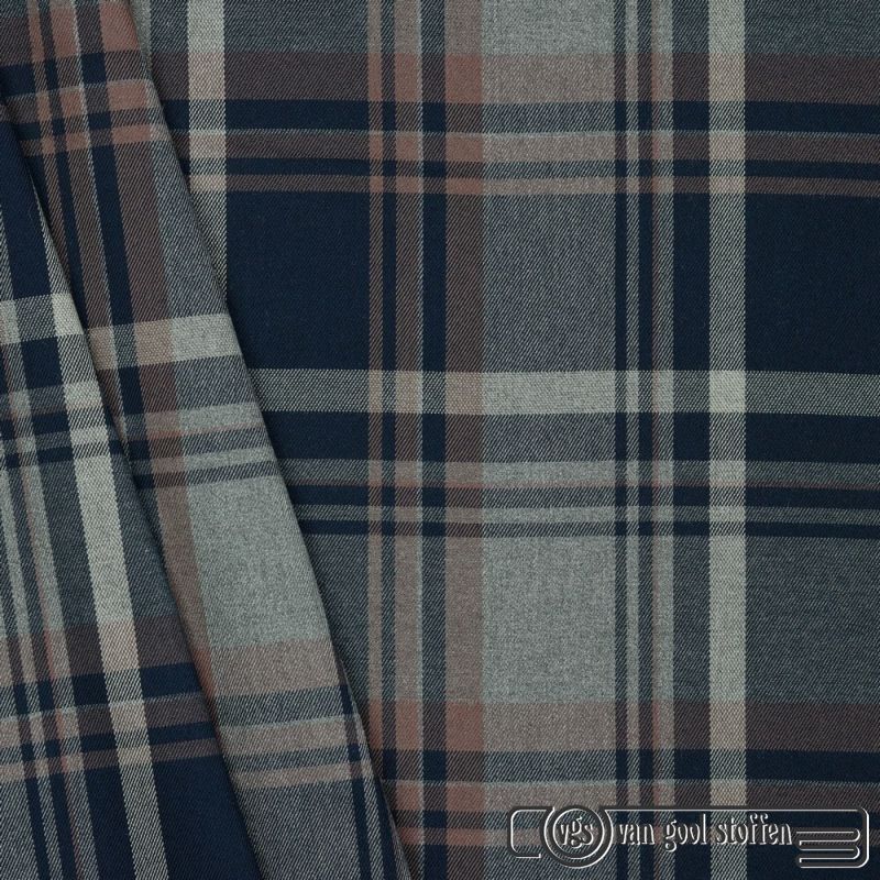 Ruit tartan terlenka stretch donker blauw grijs brique