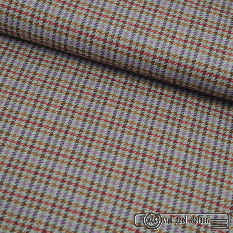 Exclusieve wollen ruit italiaanse designer stof grijs paars rood bruin
