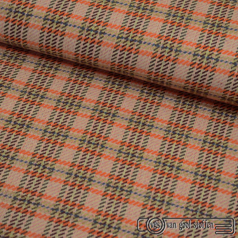 Exclusieve wollen ruit italiaanse designer stof od rose oranje groen bruin