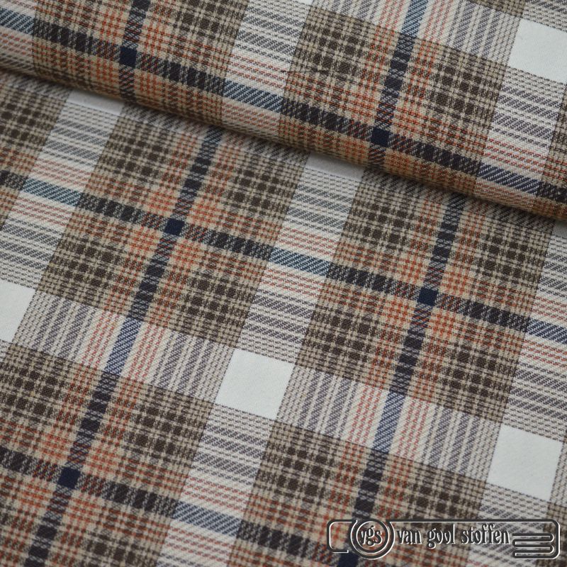Ruit katoen polyester brique white off bruin