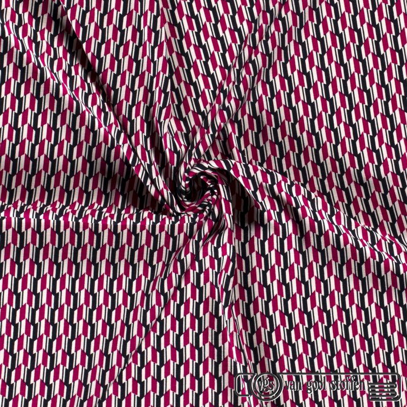 Chiffon viscose crepe abstract groen paars italiaanse designerstof