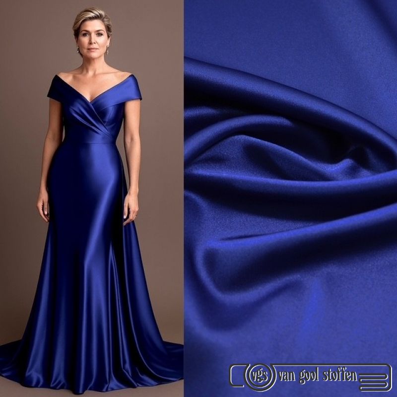Stretch satijn p25-9 kleur royal blue / kobalt blauw