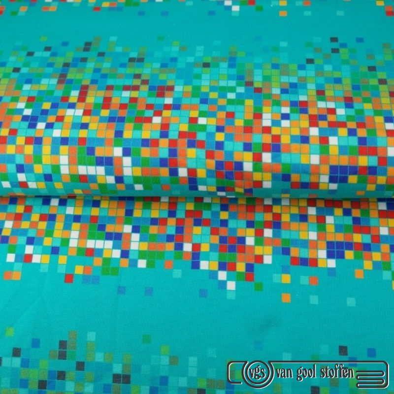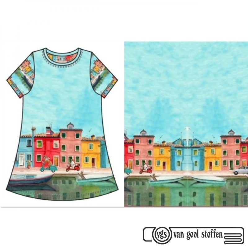 Panel tricot katoen huisjes 120cm x 150cm breed.
