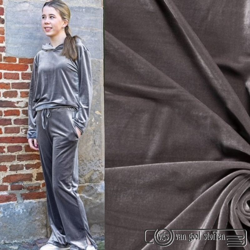 Stretch velours / fluweel Mobra velours rekbaar taupe grijs