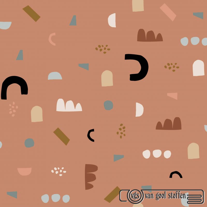 Tricot digitaal bedrukt safarie vormen dark apricot