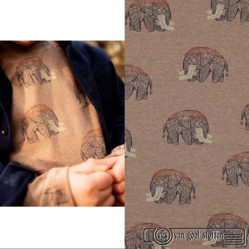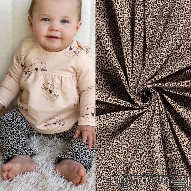 Tricot digitaal bedrukt safarie dieren dark apricot