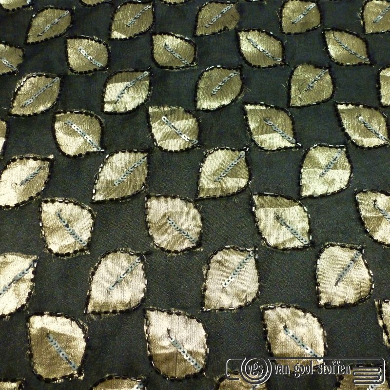 Zijde organza zwart met opgestikte rondjes