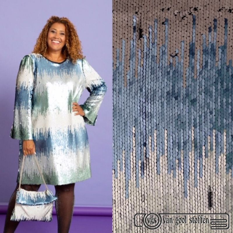 Coupon 090x125 pailletten zilver bewerkt op ivory stretch tule waaier